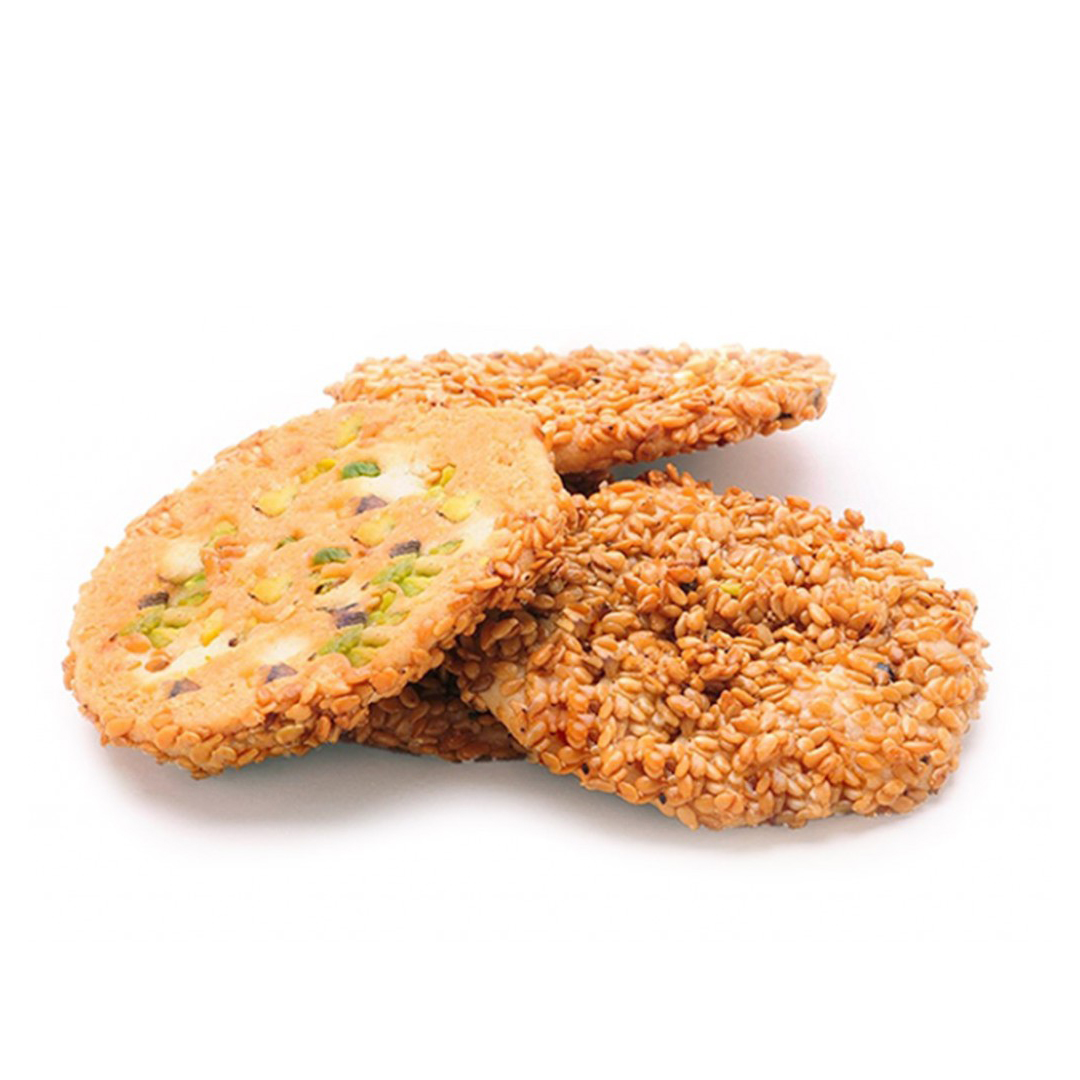 دقيق القمح، 30% سمسم، دهن الزبدة، زيوت نباتية (نخيل، دوار الشمس)، سكر، ماء، مسحوق مصل اللبن، حليب، مسحوق الفانيليا، ملون: كاروتينات، أعشاب وتوابل، فستق.